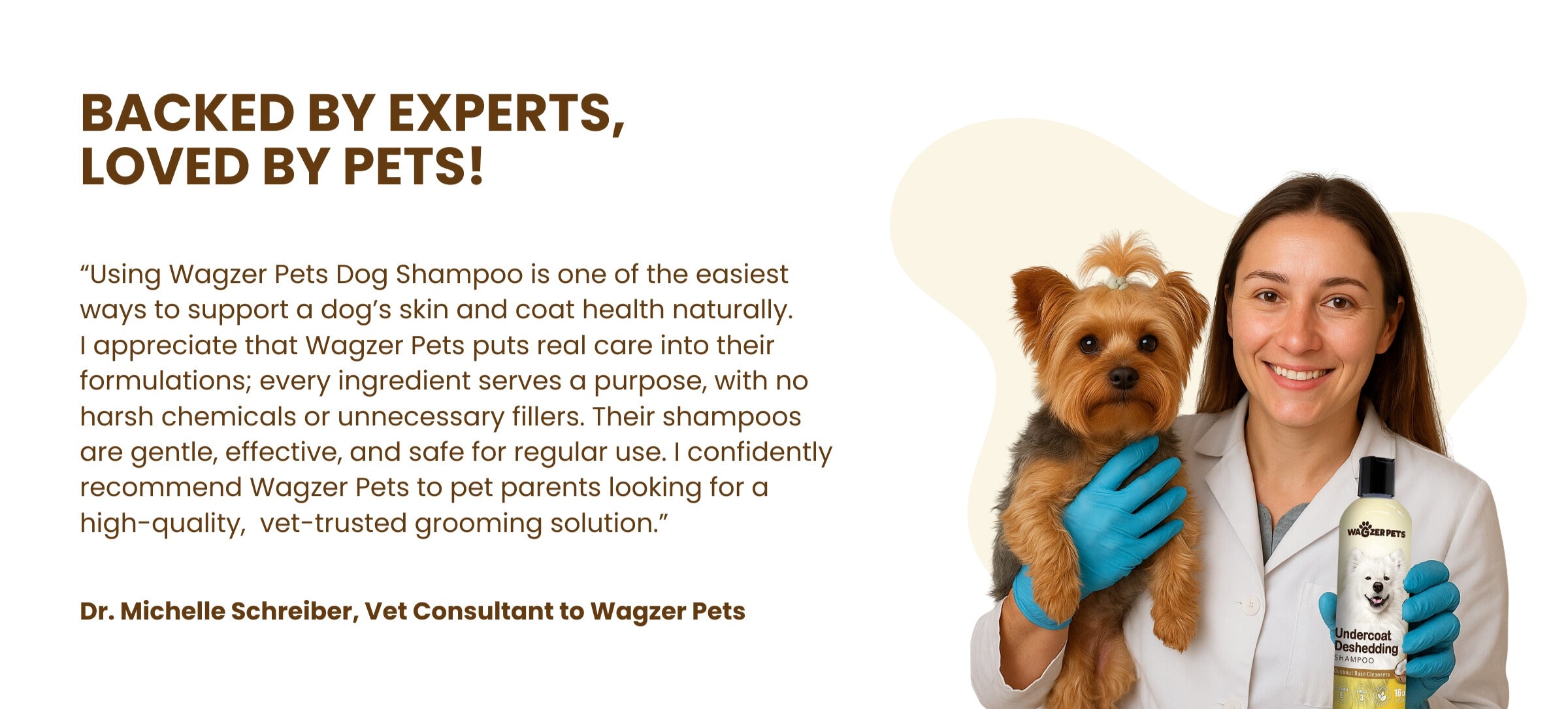 From soothing botanicals to skin-loving oils, every wash with Wagzer Pets brings comfort, shine, and long-lasting freshness. Indulge your pet with the richness of nature’s finest ingredients, carefully selected to nourish, protect, and pamper your dog’s skin and coat. Our formulas are vet-recommended, cruelty-free, and crafted with high-quality, plant-powered ingredients, free from harsh chemicals, sulfates, and parabens. With Wagzer Pets, you're choosing a grooming experience rooted in wellness, trust, and premium-quality ingredients.