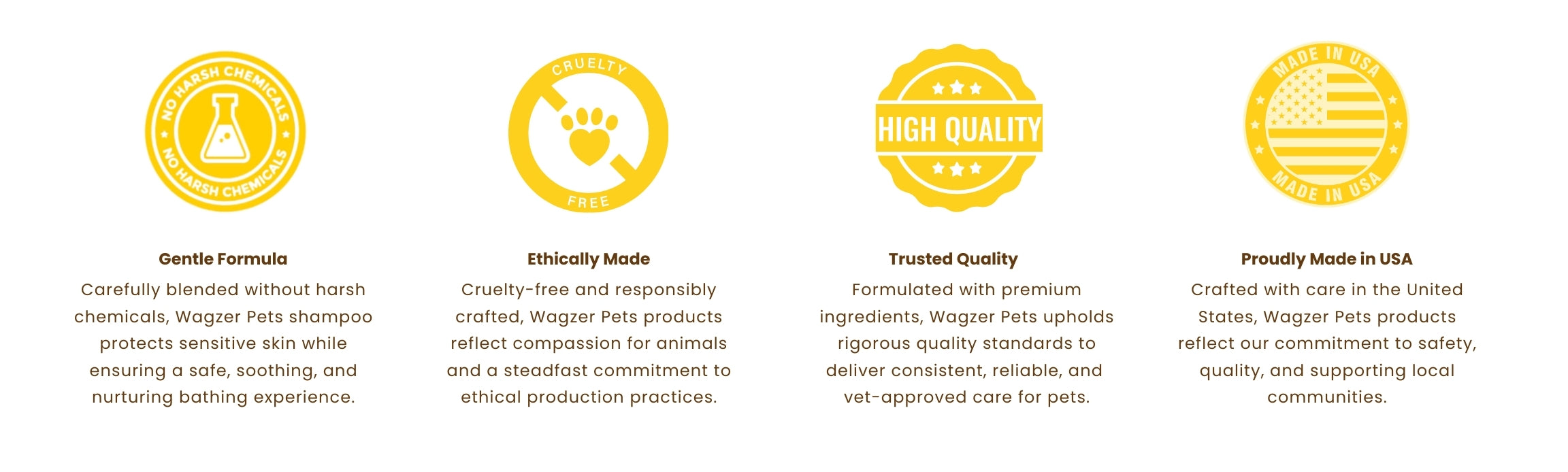 From soothing botanicals to skin-loving oils, every wash with Wagzer Pets brings comfort, shine, and long-lasting freshness. Indulge your pet with the richness of nature’s finest ingredients, carefully selected to nourish, protect, and pamper your dog’s skin and coat. Our formulas are vet-recommended, cruelty-free, and crafted with high-quality, plant-powered ingredients, free from harsh chemicals, sulfates, and parabens. With Wagzer Pets, you're choosing a grooming experience rooted in wellness, trust, and premium-quality ingredients.